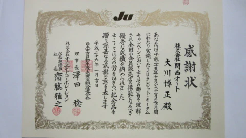 JU&オリコ JUクレジット・オータムキャンペーン表彰