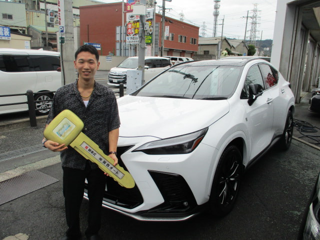 レクサスNXご注文ありがとうございました。 遠方よりご来店、ご成約ありがとうございました。 旅行がてらお帰りとの事なので無事故で気を付けてお帰り下さいませ。 ありがとうございました。